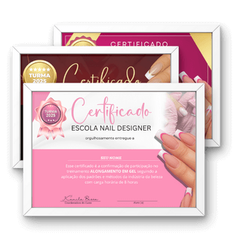 Ao concluir nosso curso online de alongamento de unhas, você não apenas adquire novas habilidades, mas também recebe 25 Certificados de Conclusão, testemunhando seu comprometimento e dedicação.